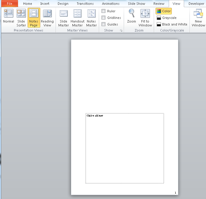 Страница заметок в powerpoint