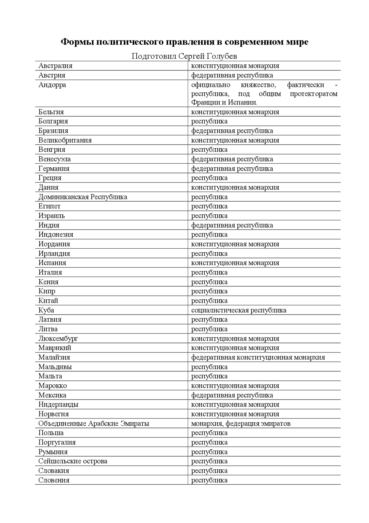 Страны и их форма правления