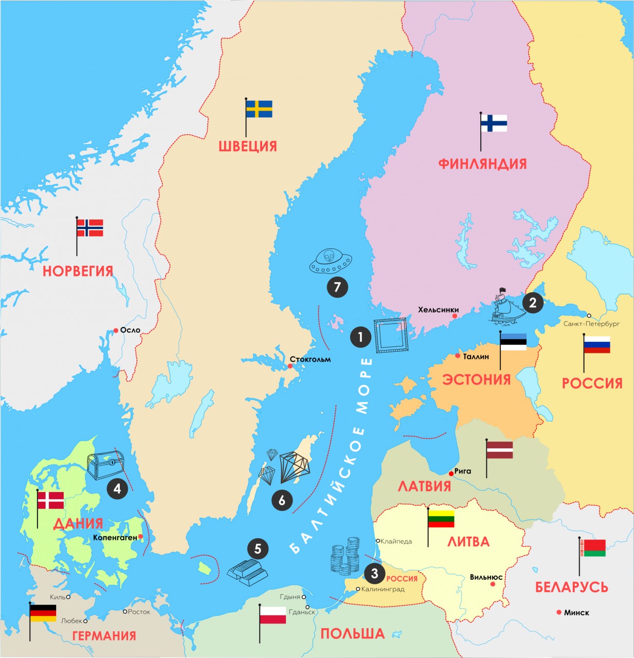 Страны омываются балтийским морем