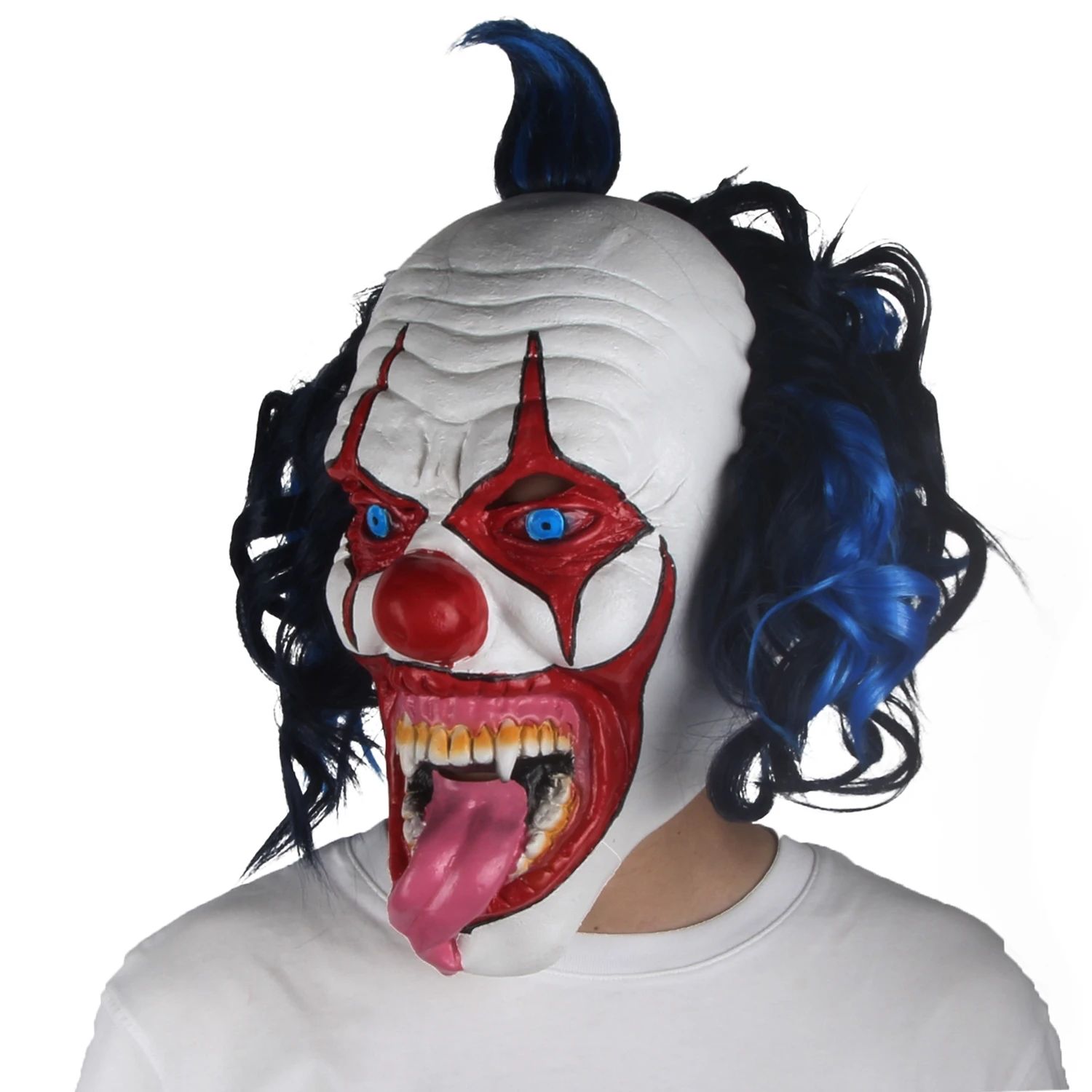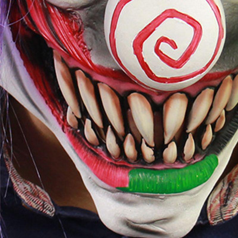 Картинка со страшной маской . Выбирается из-под земли . Страшная ведьма с зелёной кожей . Красные волосы страшной женщины . Безумный монстр на картинке .