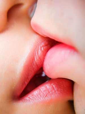 Французский поцелуй с языком — или «взасос» — может чередоваться с поцелуями одними губами, нежным покусыванием или посасыванием верхней или нижней губы партнера .