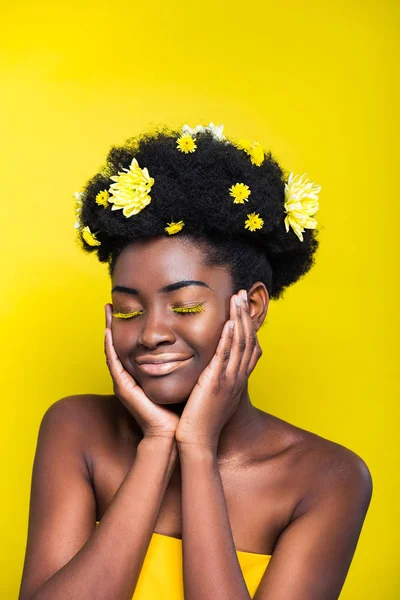 Страстная африканская американка с искусством тела, . . . Сексуальные длинные волосы азиатская девушка отдыхает современная концепция образа жизни .