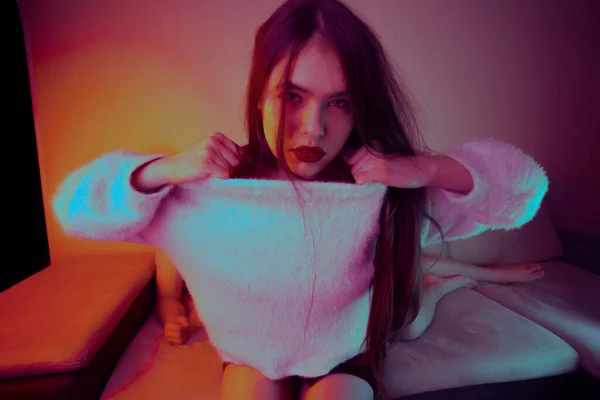 Страстная девушка раздевается на улице
