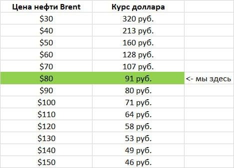 Каким должен быть курс доллара к рублю при разной стоимости нефти для исполнения бюджета?
