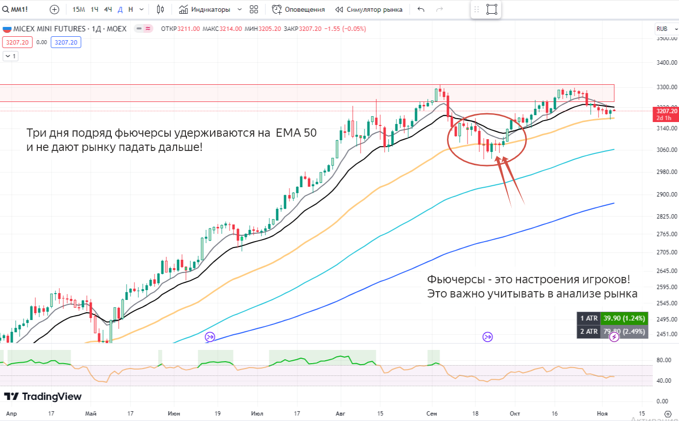 Пример 1: Фьючерс ММ1! заранее подсказал разворот рынка.
