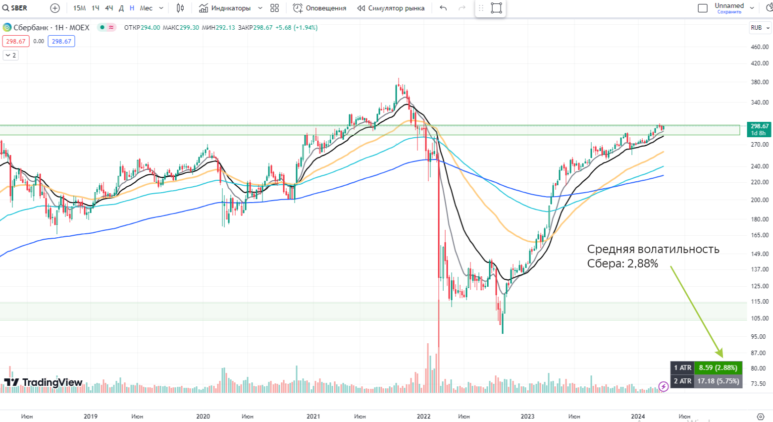 5️⃣И наконец, пятое, это ATR. Или индикатор волатильности. Он подскажет нам среднюю волатильность на бумаге, а мы исходя из этой информации будем корректно выставлять стопы по бумагам. Все просто.