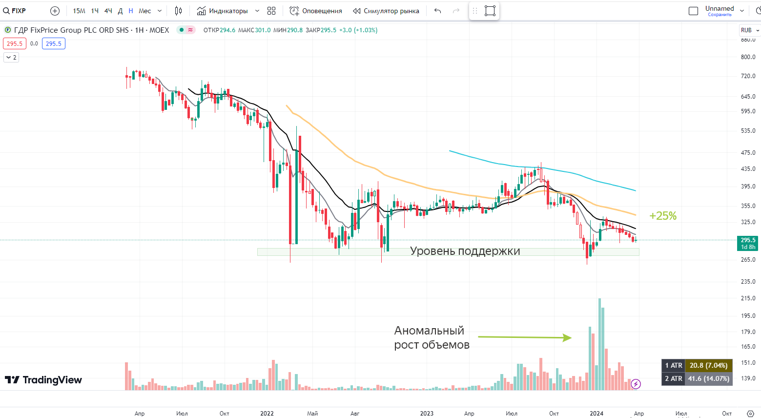 Далеко ходить не будем и возьмем снова скрин FIX Price. Компанию выкупили после падения в 2022 году, и теперь каждый раз выкупают у этого же уровня. Это исторический минимум компании. Важная поддержка!