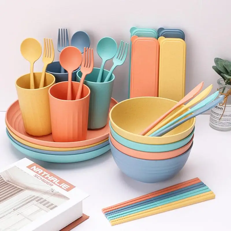 Straw Kitchen Utensils Spoon Fork Chopsticks Utensil Dinnerware Set Travel Portable Extensive Use Dinnerware Kitchen Accessories - Купить с бесплатной доставкой