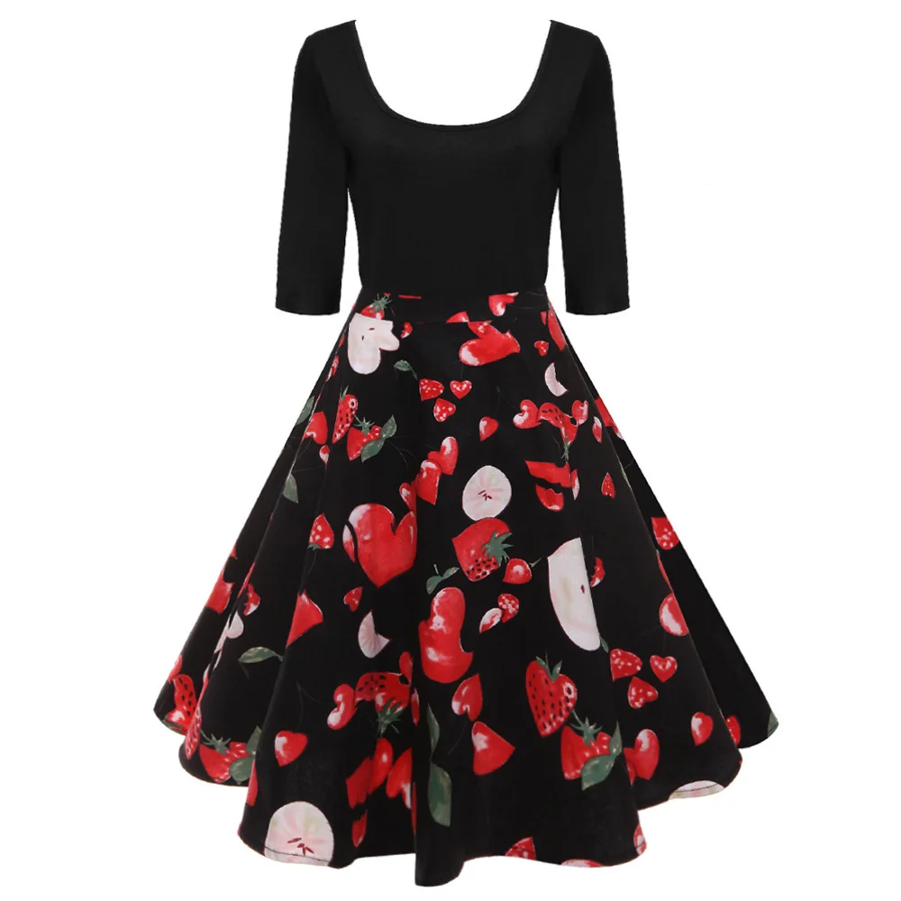 Women Halloween Party Dress Long Sleeve V Neck Pumpkin Print Vintage Casual A-line Plus Size Dresses Vestidos S-3XL