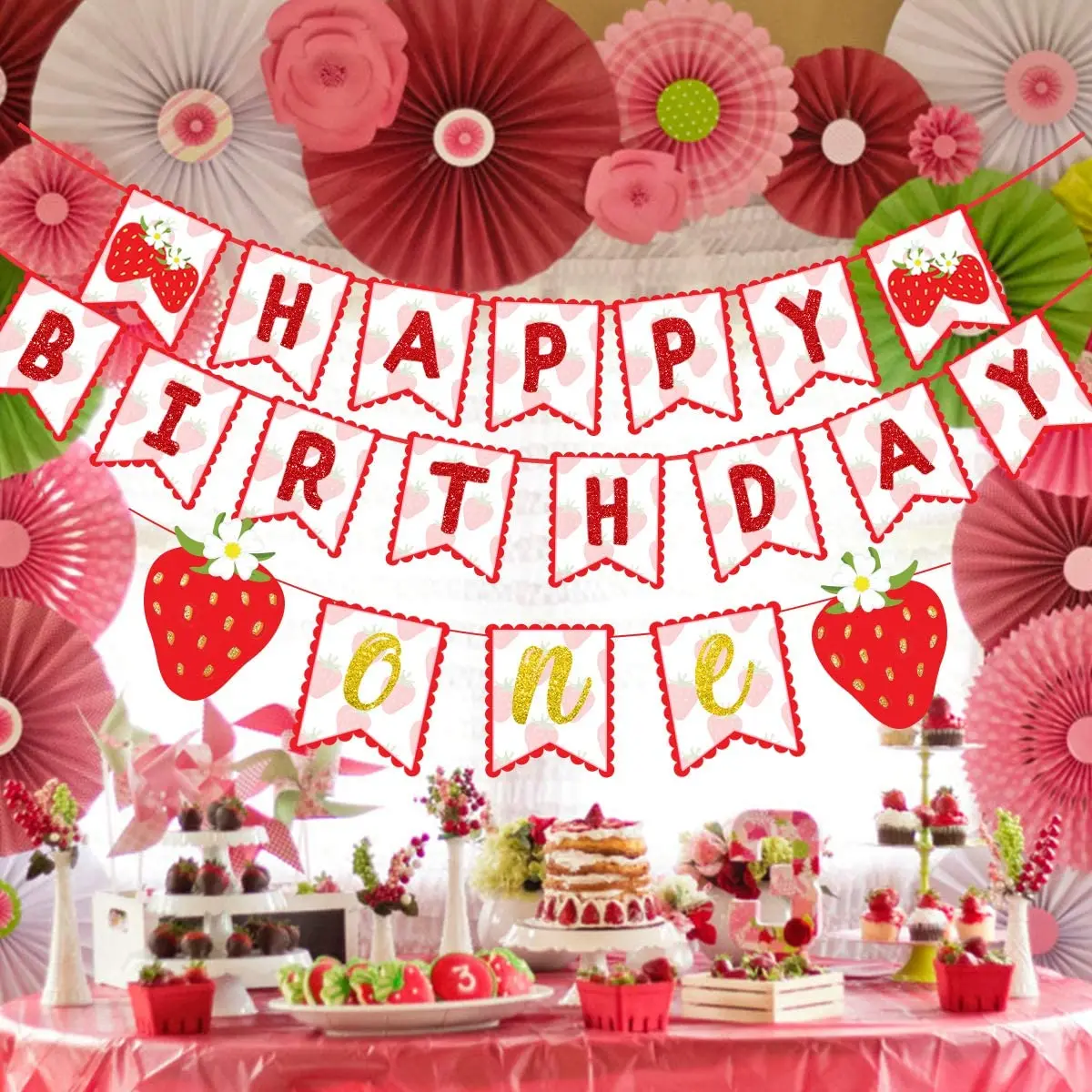 «Strawberry Happy Birthday Party Banner Set for 1st Birthday Berry Theme Happy Birthday Garland Flag for Photo Props» по лучшей цене на рынке! Всего за 11$ (1045рублей)