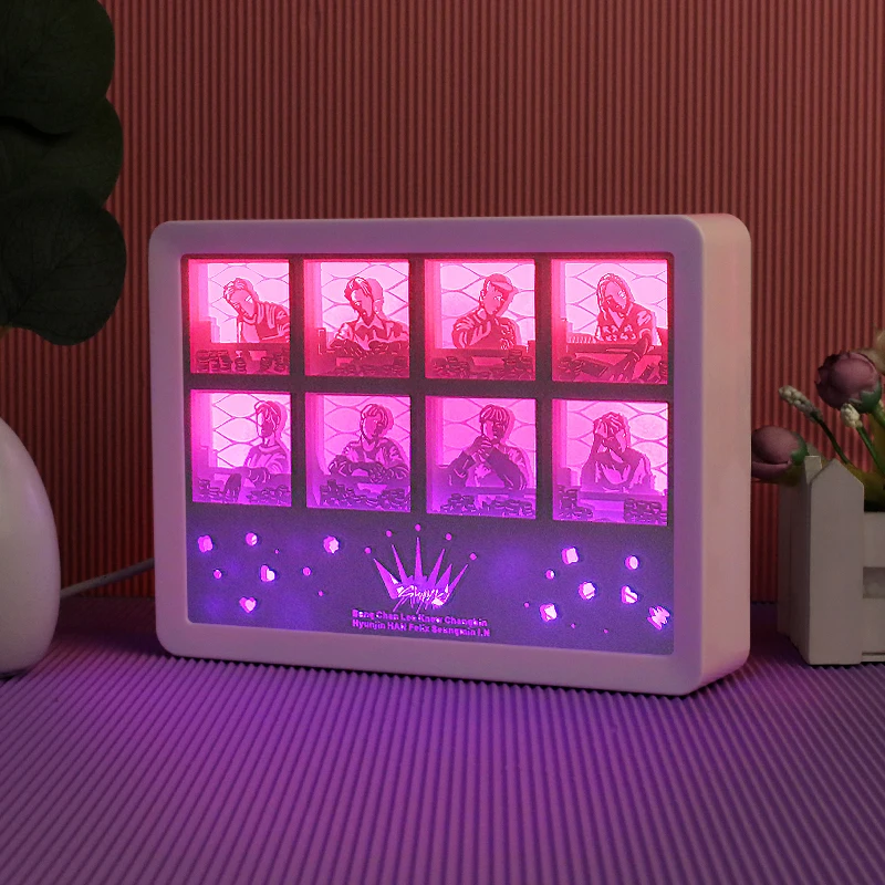"Stray Kids Shadow Box Frame With Led Usb 7Sheets Paper Cut Light Box 3D Desk Lamp Rechargeable Light Sleep Aid Room Decoration" * Buy Now Just For 20$