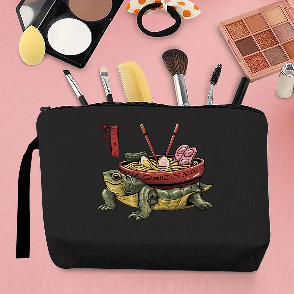 "Street Trend Women's Cosmetic Bag Japanese Pattern Printing Commuter Travel Canvas Black Storage Change Creative Small Clutch" * Buy Now Just For 3$