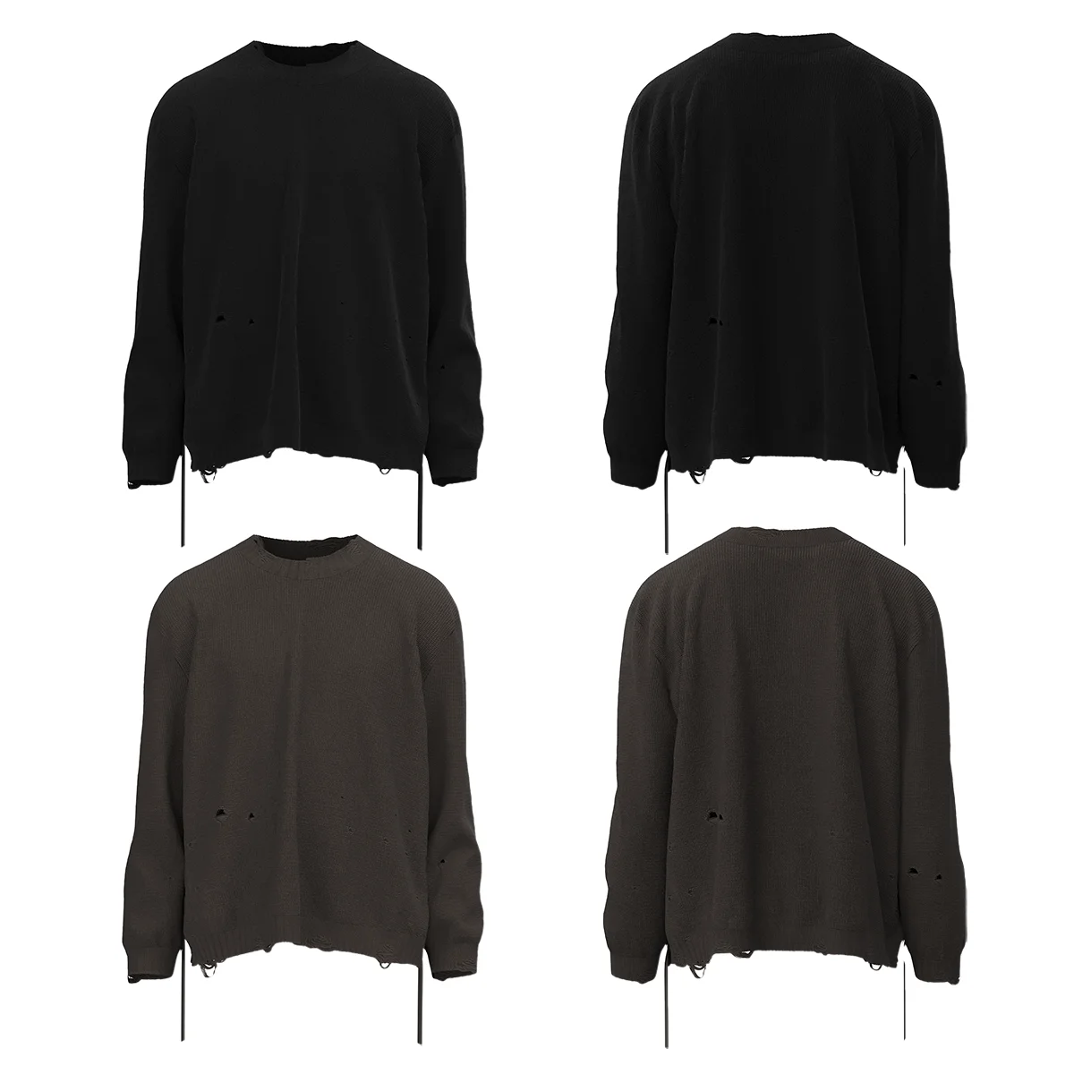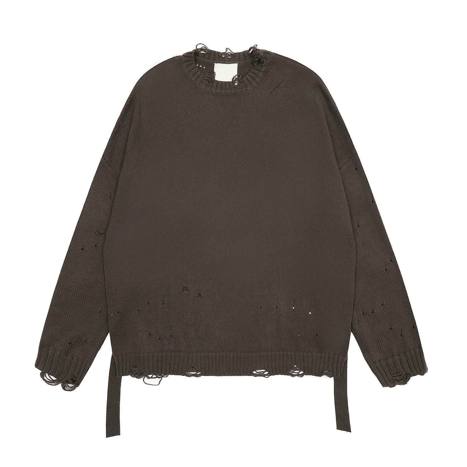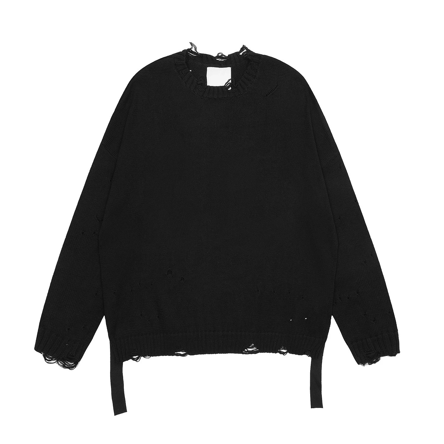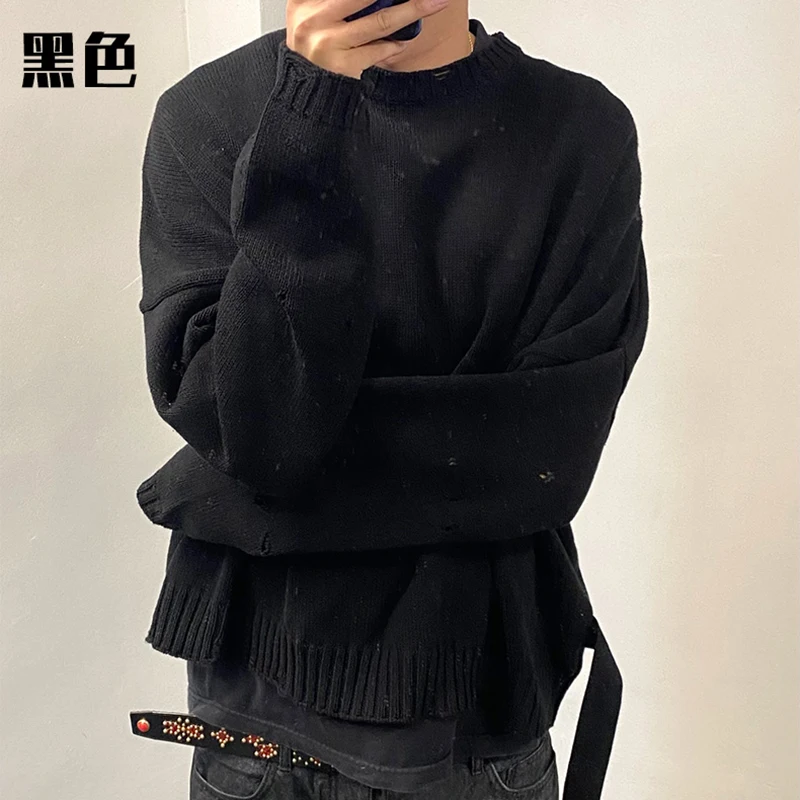 Streetwear Oversized Knitted Sweater Solid Color Washed Damaged Round Neck Knitwears Ripped Bandage Frayed Sweaters Vintage - Купить с бесплатной доставкой
