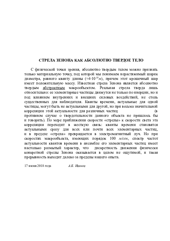 Смысл и разрешение апории Зенона «Стрела» Зенон Элейский, ученик Парменида, сформулировал множество апорий, в которых показывал противоречивость движения, пространства и множества . Один из парадоксов под названием «Стрела» звучит так: Летящая стрела в каждый момент времени неподвижна, а раз так, то она неподвижна в любое время .