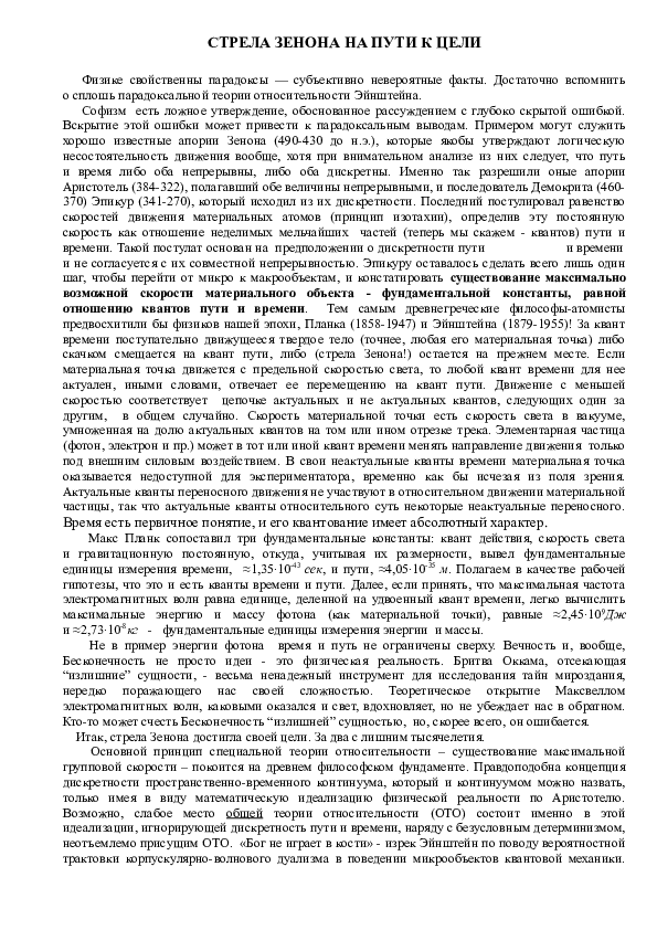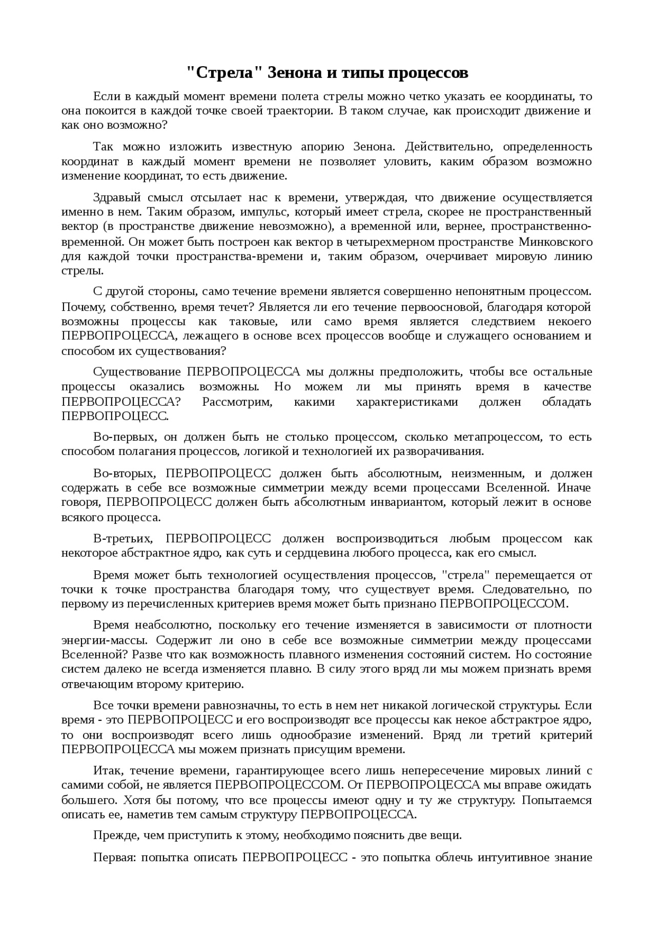 Тема работы: "Стрела" Зенона и типы процессов по предмету Философия . Размер: 18 .08 КБ . Содержит 10563 знака, 0 таблиц и 0 изображений . . Стрела Зенона и типы процессов .Если в каждый момент времени полета стрелы можно четко . . .