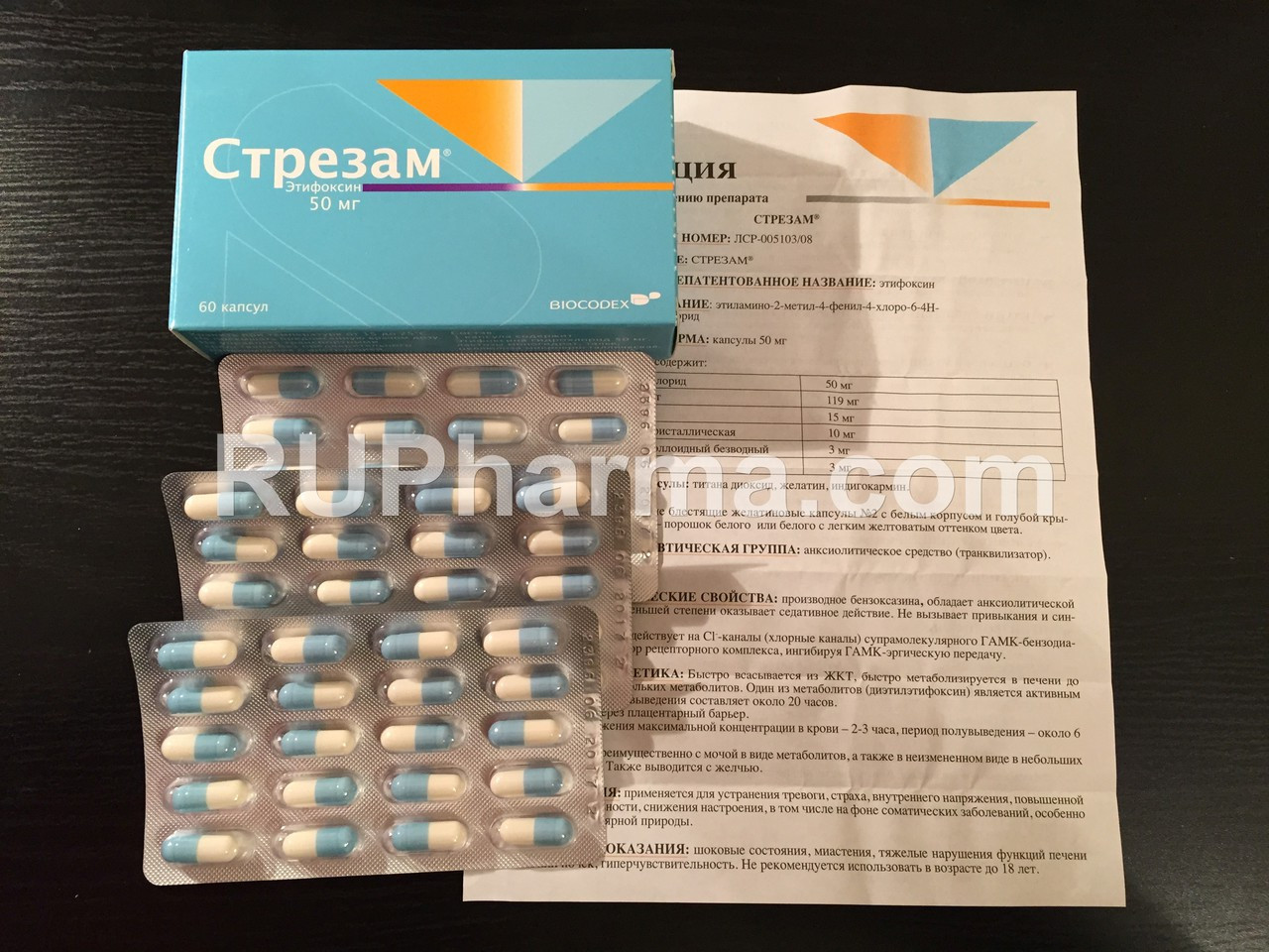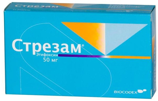 «Стрезам» Этифоксин (Etifoxine) — анксиолитическое (противотревожное) лекарственное средство . Фармакологическое действие обусловленно непрямым влиянием на ГАМК -ергическую трансмиссию .
