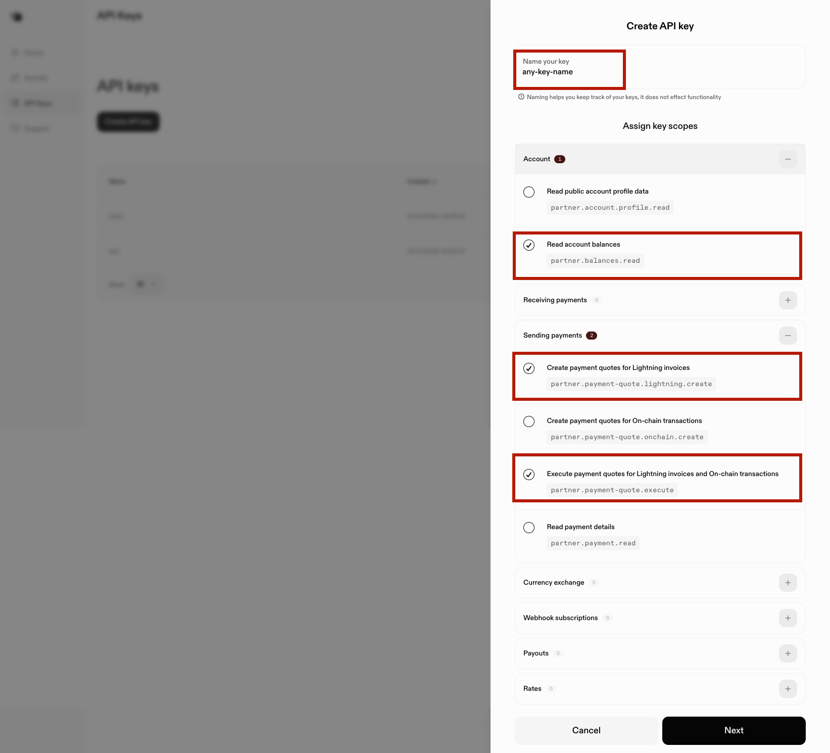 api-key 발급시 `partner.balances.read`, `partner.payment-quote.lightning.create`, `partner.payment-quote.execute` 권한 필수