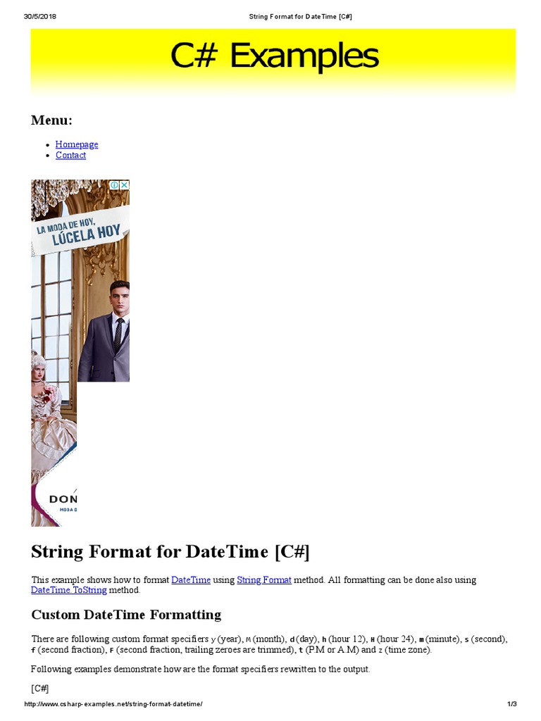 String Format for DateTime [C#] - C# Examples