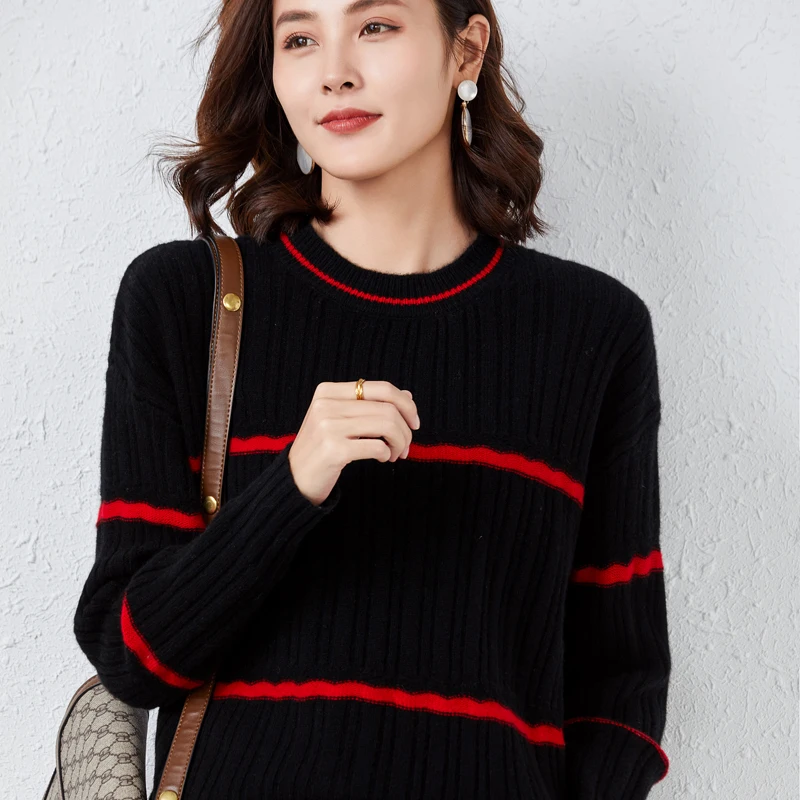 bAxiXwVKSIДолго искали Striped Round Neck 100% Pure Woolen Sweater Women Autumn Winter 2022 New Thickened Sweater Loose Knit Base Cashmere, но не могли найти? Предоставляем вашему вниманию Striped Round Neck 100% Pure Woolen Sweater Women Autumn Winter 2022 New Thickened Sweater Loose Knit Base Cashmere по лучшей цене на рынке!