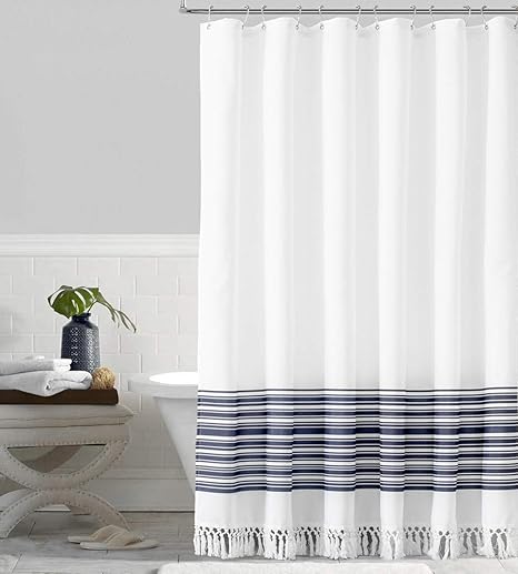 Modern Farmhouse Tassel Shower Curtain 100% Cotton Striped Fabric Shower Curtain with Tassels for Bathroom Decor, 72x72-Black and White 4 .7 out of 5 stars 253 $33 .95 $ 33 . 95