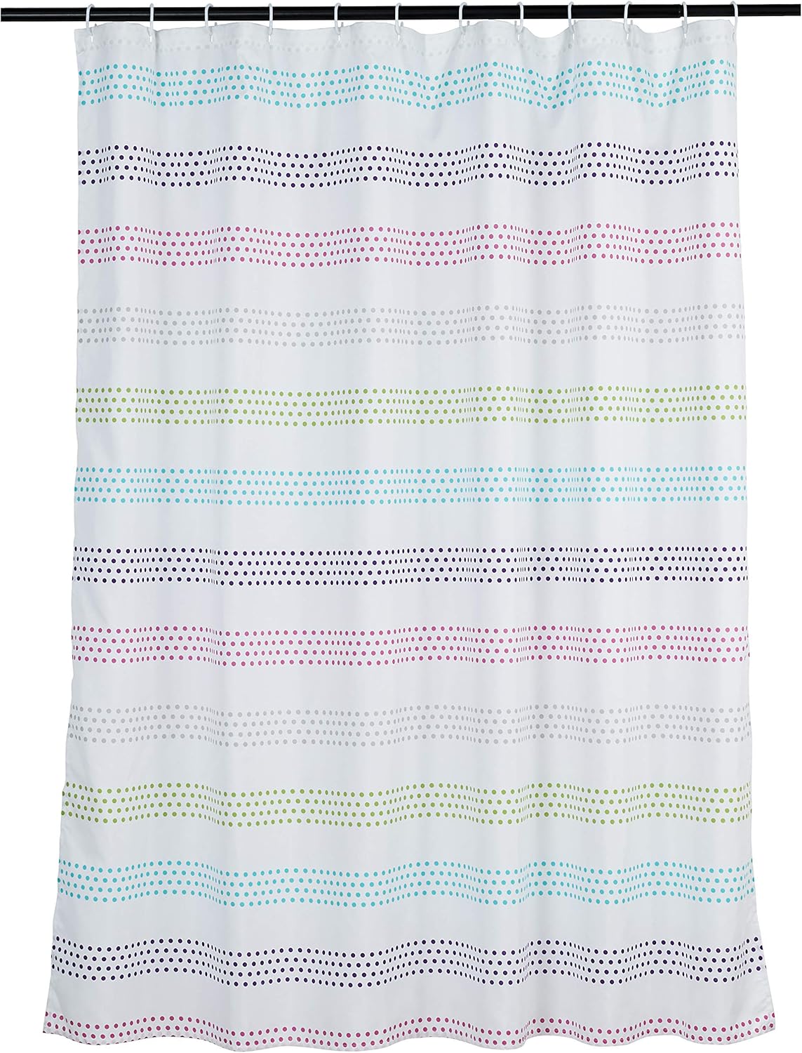 This striped shower curtain features polyester fabric for durability .