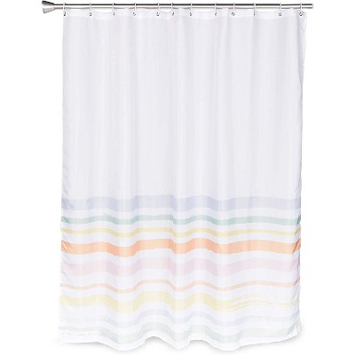 Stripe shower curtain is an easy way to create a bathroom makeover . Add a touch of style and a splash of color to your bathroom with this designer collection . Features: Brushed microfiber and machine washable . Shower hooks and liners not included . Material: Brushed microfiber;
