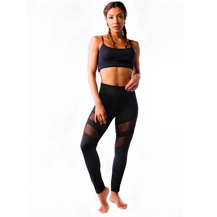SALSPOR Fitness Mesh Leggings Women Fashion High Waist Solid Black Breathable Push Up Stitching Leggings