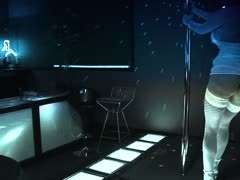 Eine quadratische Prostituierte tanzt vor einem Kunden in einer Sauna und zieht si