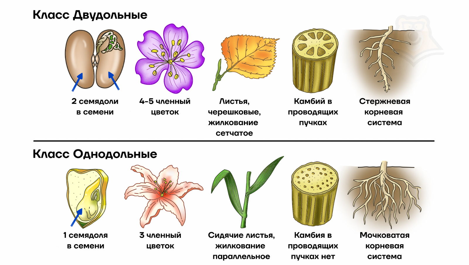 Строение цветка у однодольных и двудольных