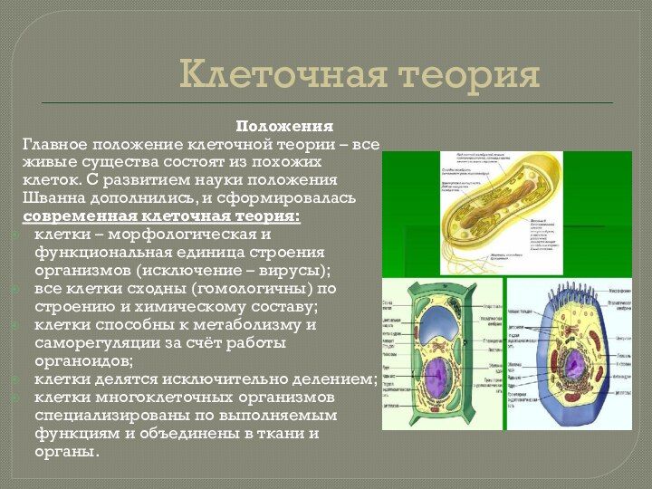 Строение клетки положение современной клеток теории