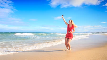 Стройная Блонди В Красном