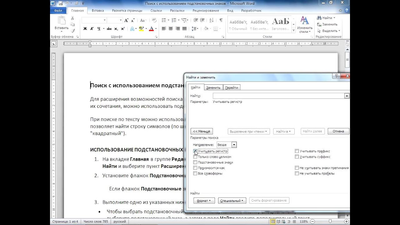 Строка поиска в ворде