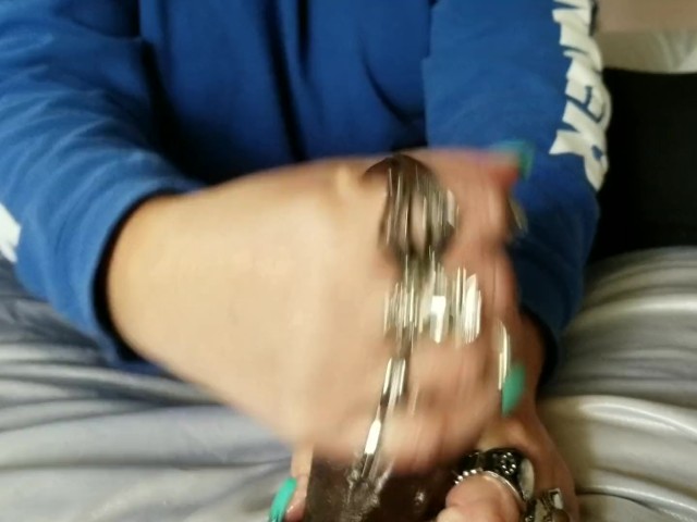 Chubby girl handjob penis slowly