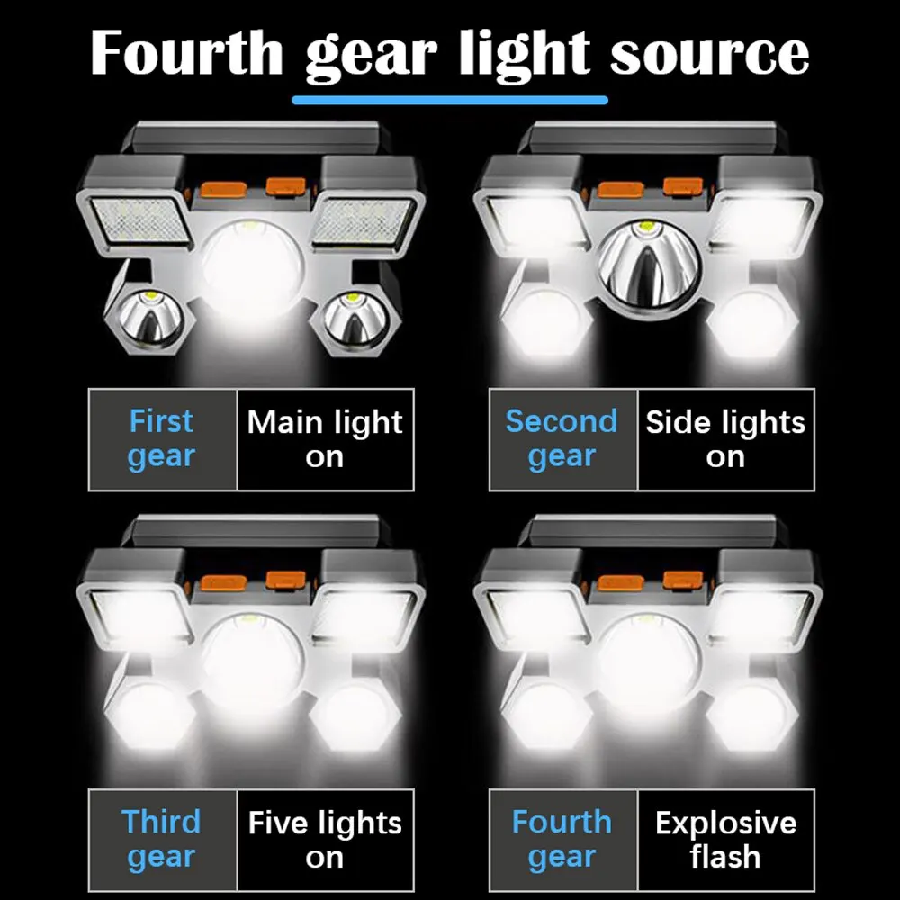 Strong Headlight LED Five-Head Headlight Super Bright USB Rechargeable Fishing Light Long-Distance Head-Mounted Flashlight - Купить с бесплатной доставкой