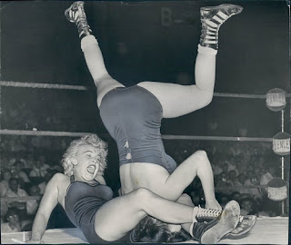 Woman Wrestling With Man In Mixed Wrestling Contest . . .