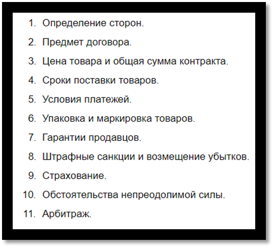 Структура и содержание контракта