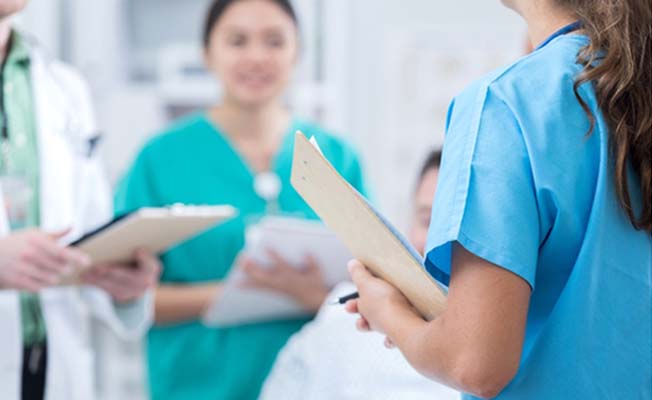 Студент медик следящий за пациентом