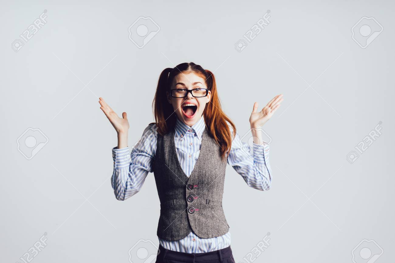 Scarica questo file PSD premium su Ragazza studentessa con gli occhiali sorpreso e scioccato mentre sembra giusto . emozione facciale espressiva e scopri piΓΉ di 11 milioni di risorse grafiche professionali su Freepik