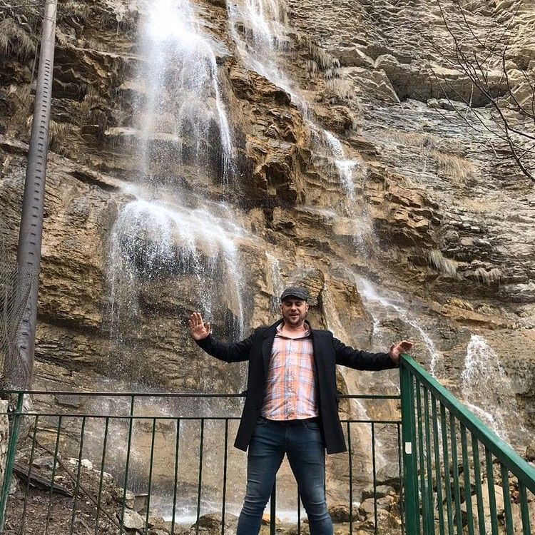 Студентка на фоне водопада
