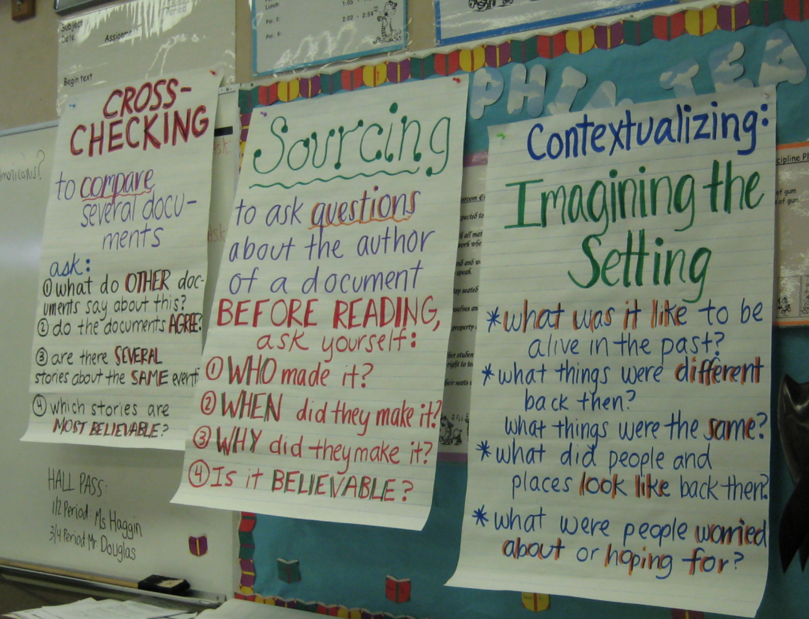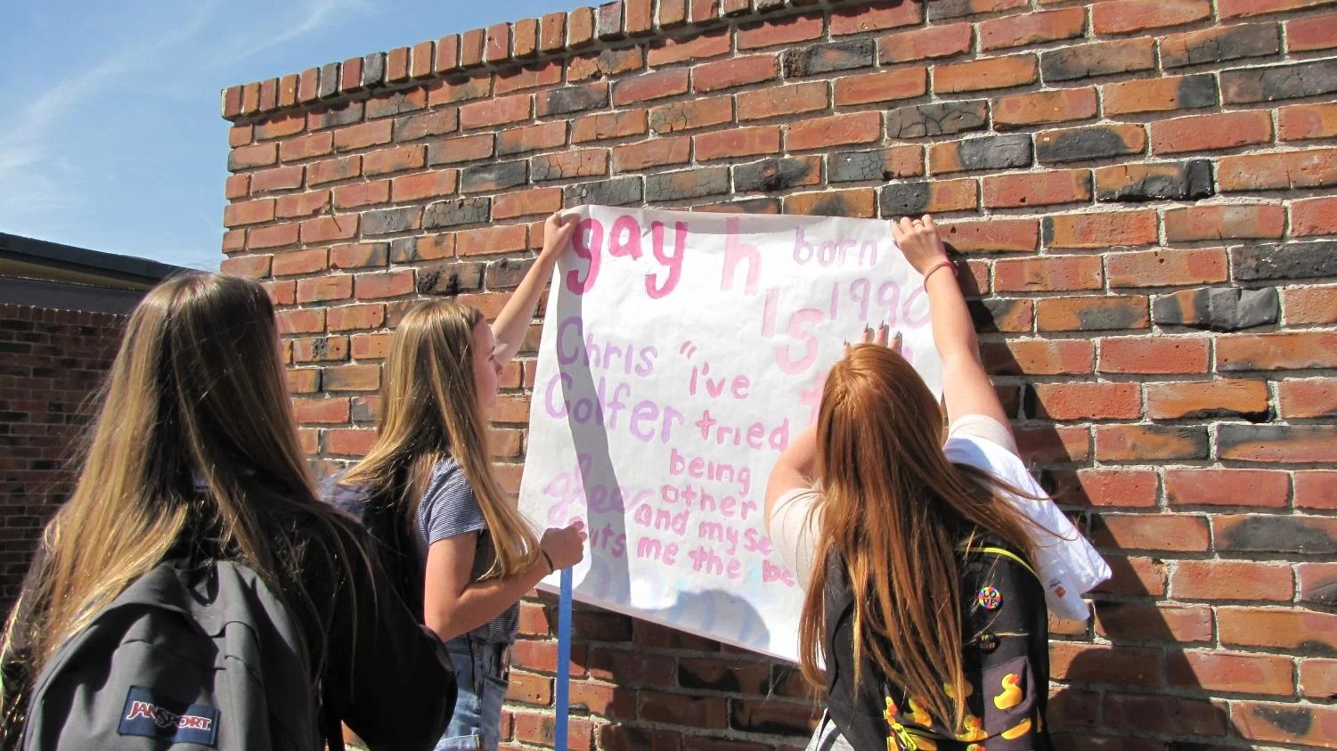 Students put posters on the walls