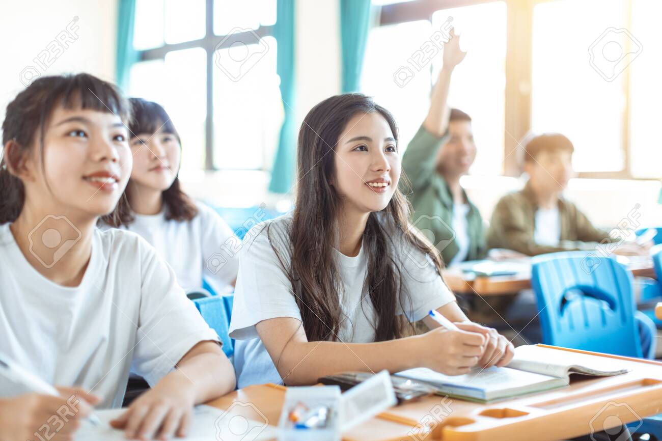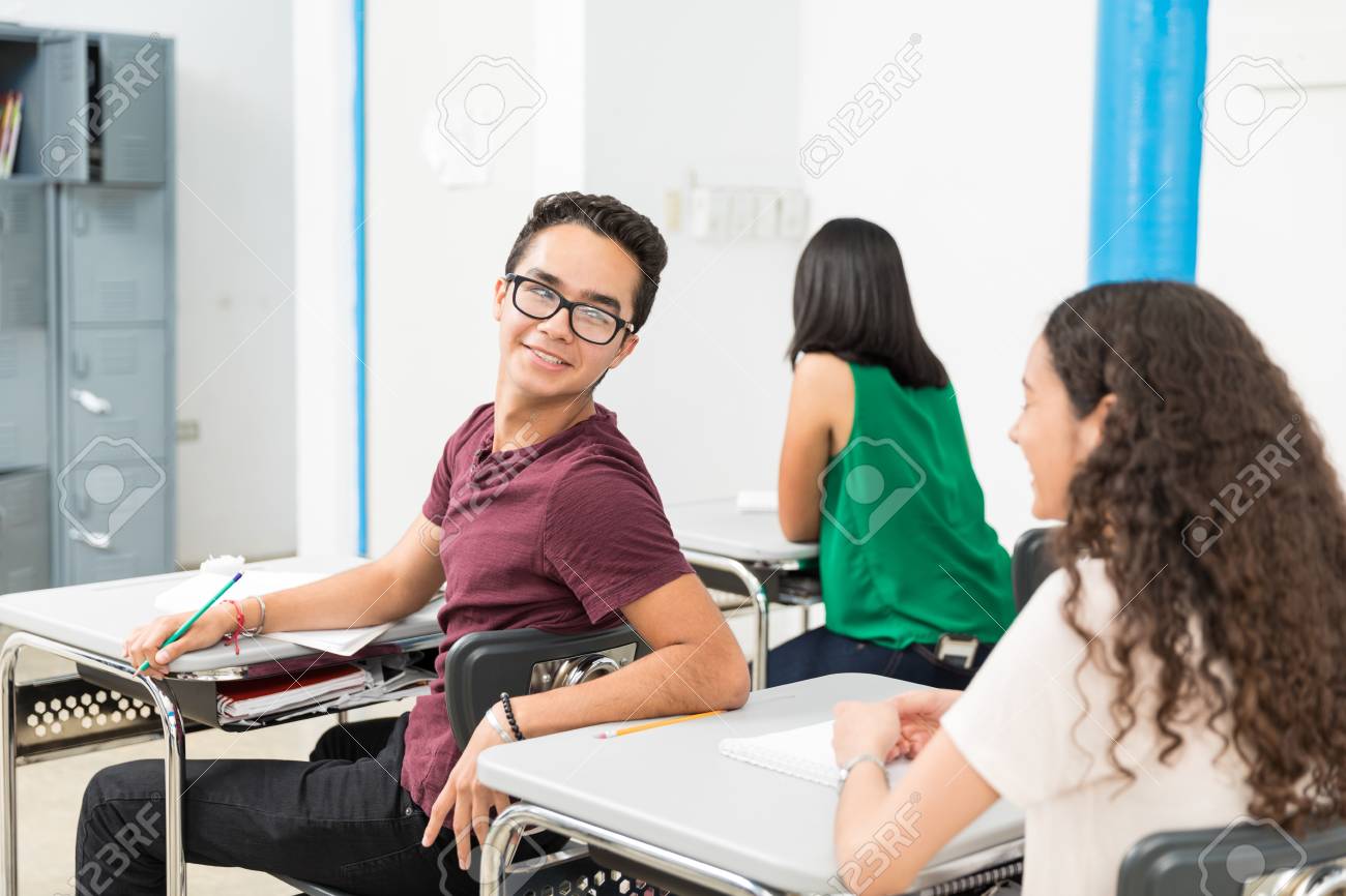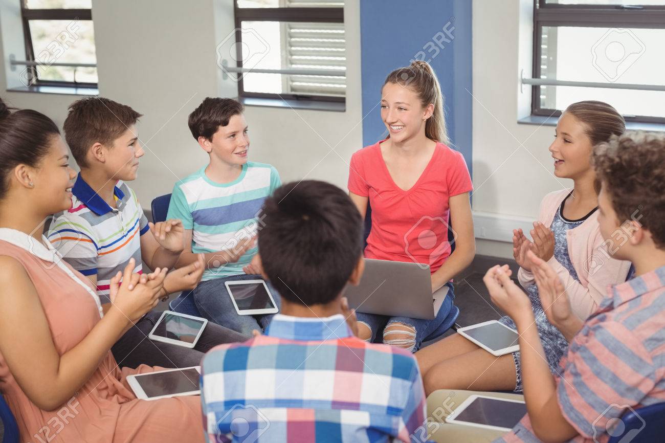 Students with classmate after class