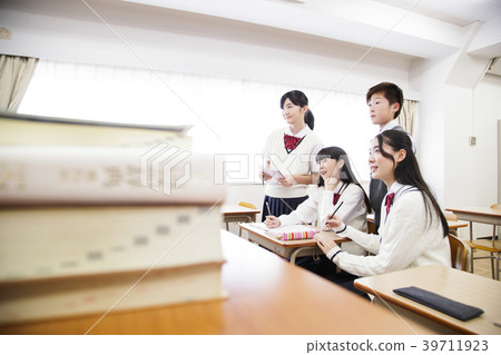 Students with classmate after class
