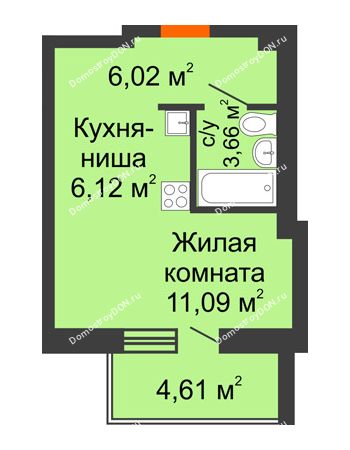 Яркая студия 31 м² с уютным балконом и потрясающей ванной . . .