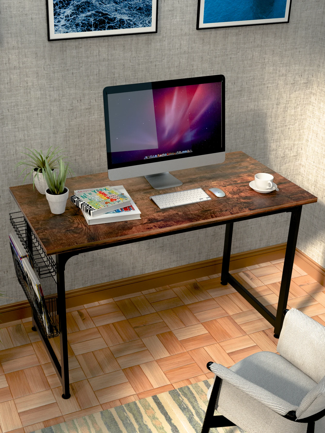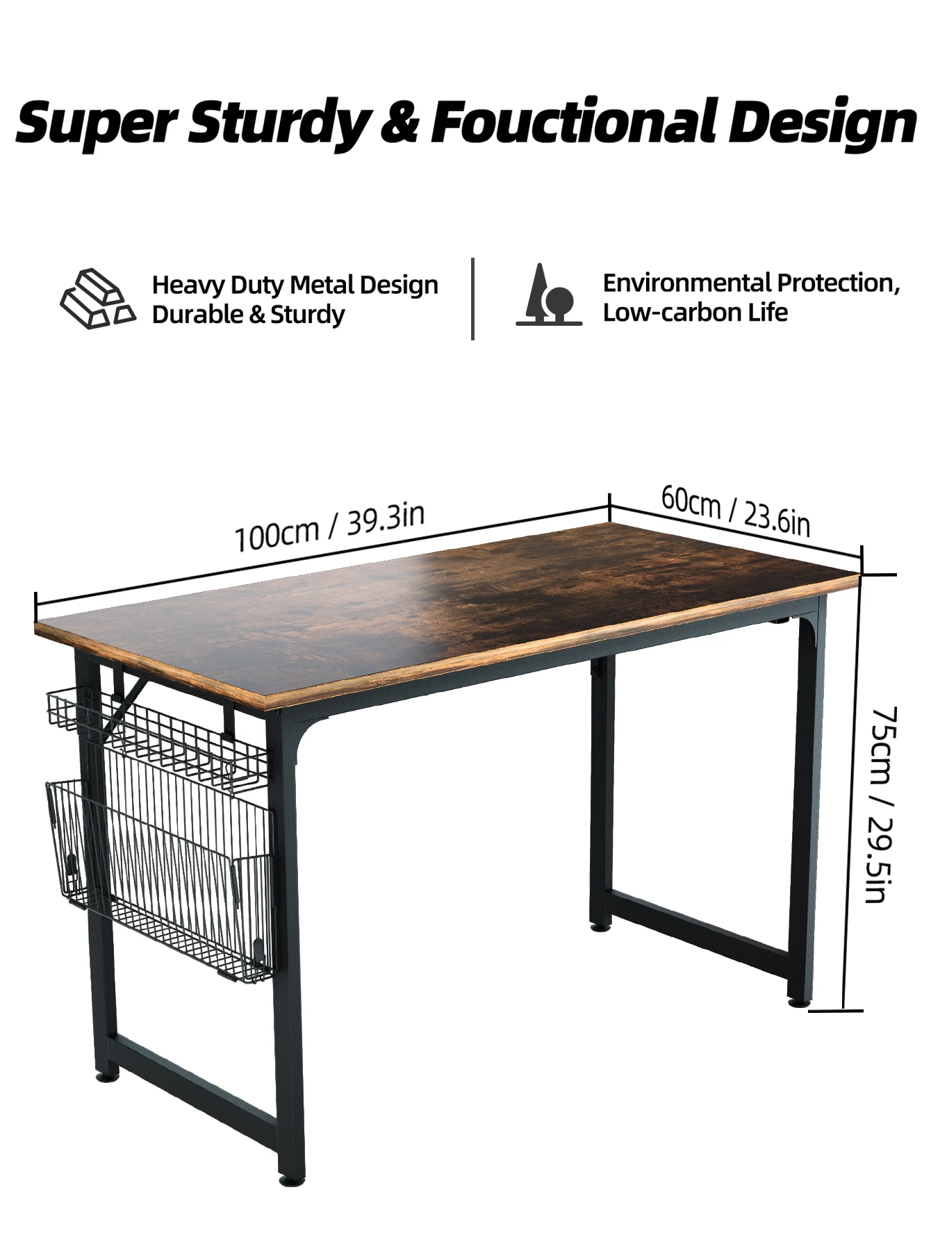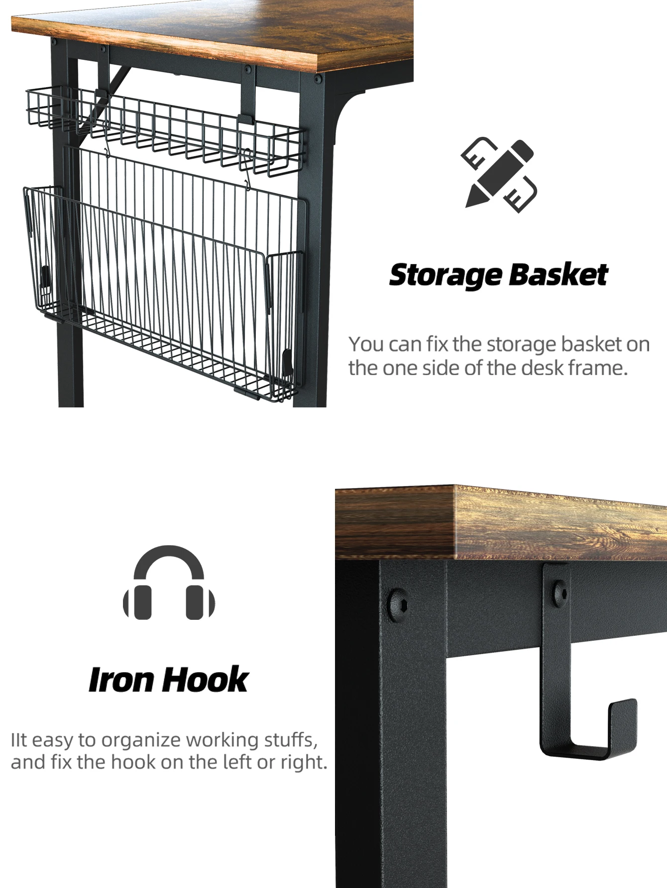 fYsiCueImXHere you can buy StudyComputerDesk-40InchHomeOfficeDeskWoodStorage TableBlack Metal FramePCTablewithStorage Basket and HeadphoneHooksRusticBrown with free delivery to your post office.