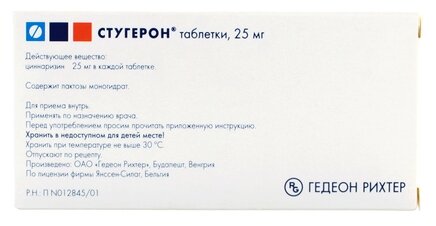Стугерон таблетки по 25 мг, 50 шт .: инструкция, цена, отзывы, аналоги . Купить . . .
