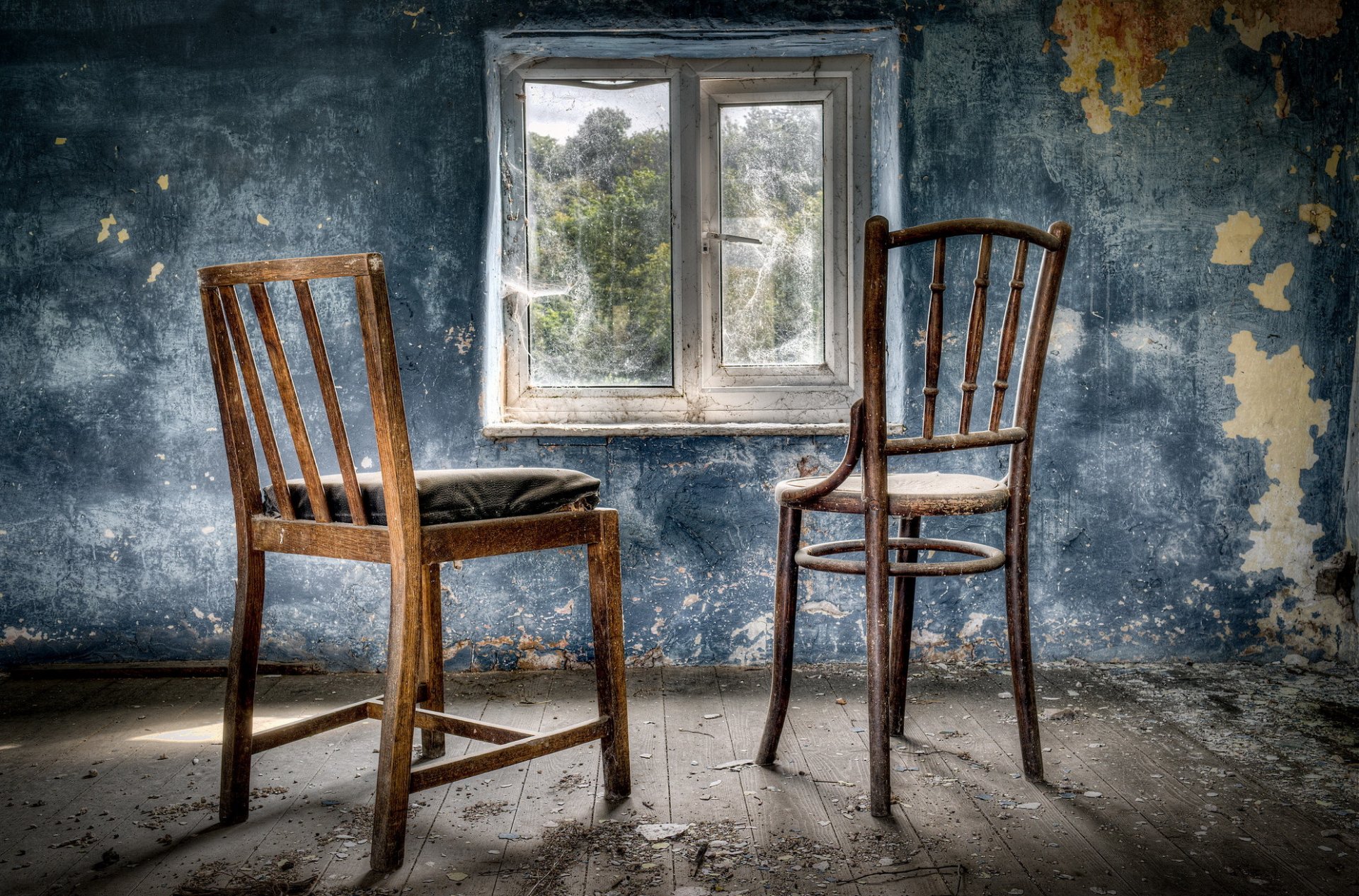 Стул И Блондинка Посреди Пустой Комнаты