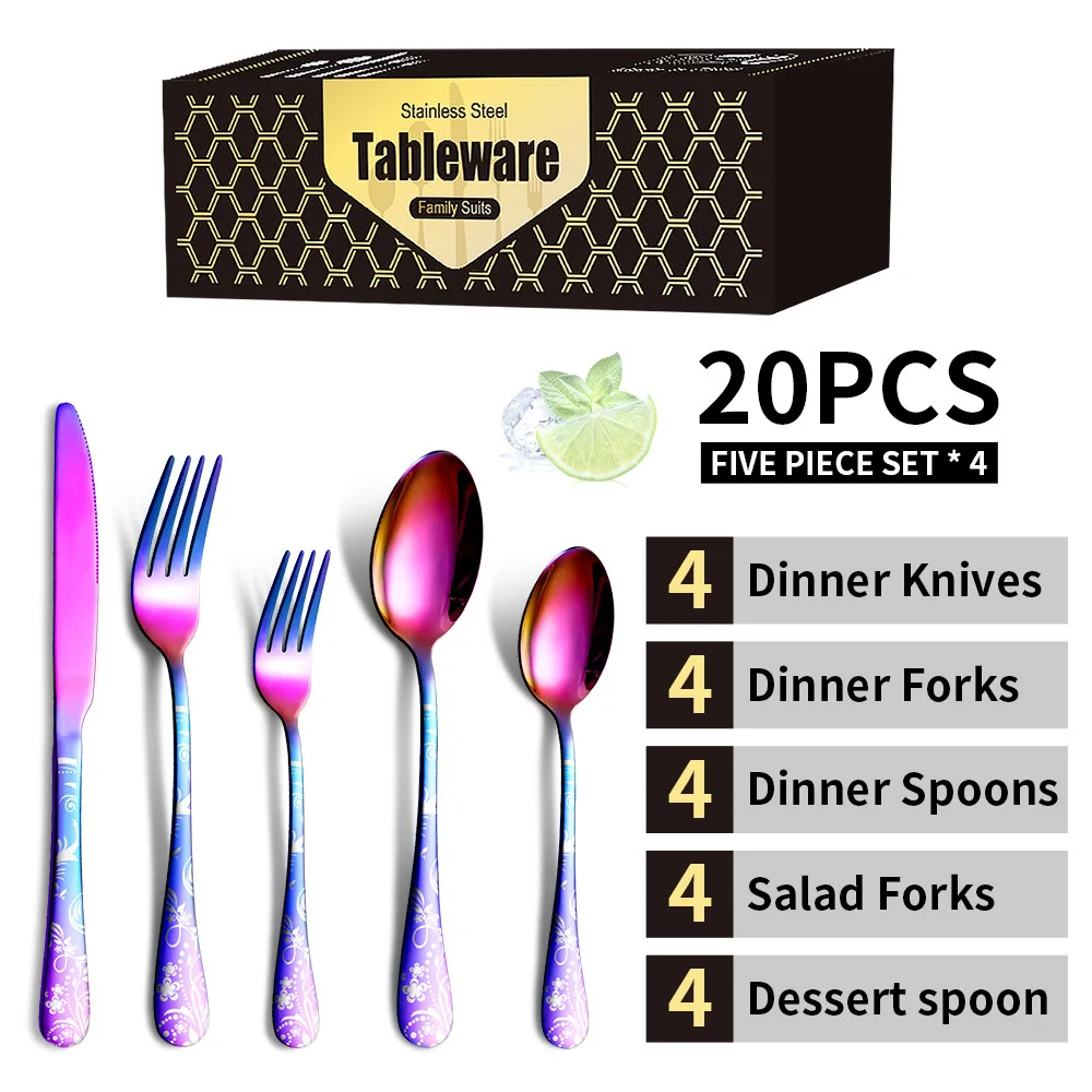 "Stunning Cross-Border Stainless Steel Tableware Set with Exquisite PVD Pattern Plated Design - Elevate Your Dining Experience" * Buy Now With Free Shipping Just For $37