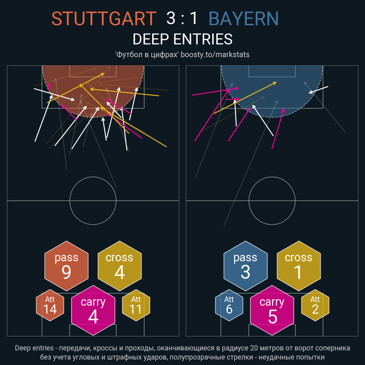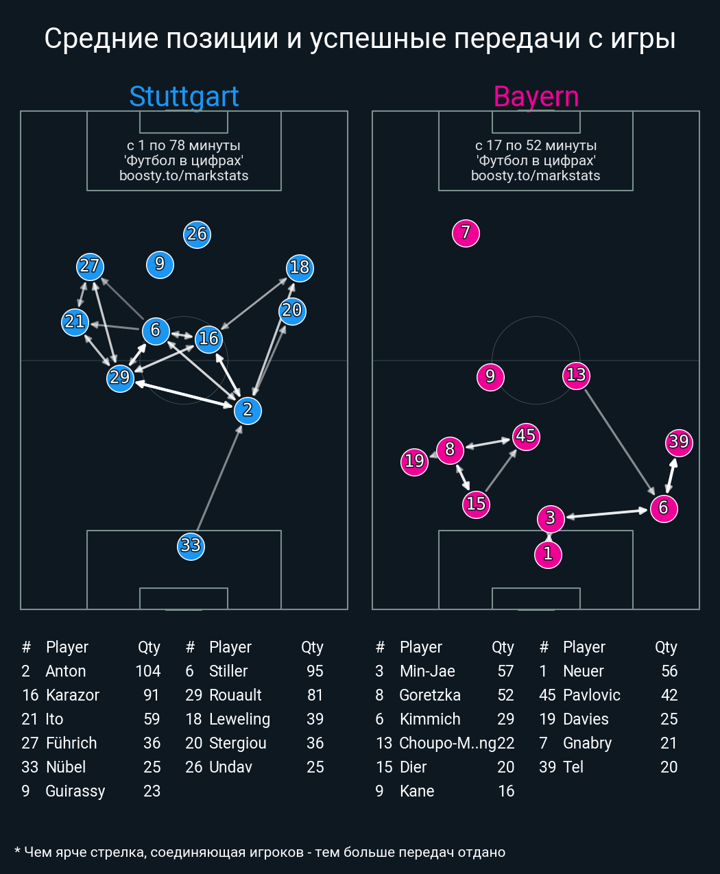 33 успешных передач из 39 попыток (1 под удар, 4 с продвижением, 14 на трети соперника)