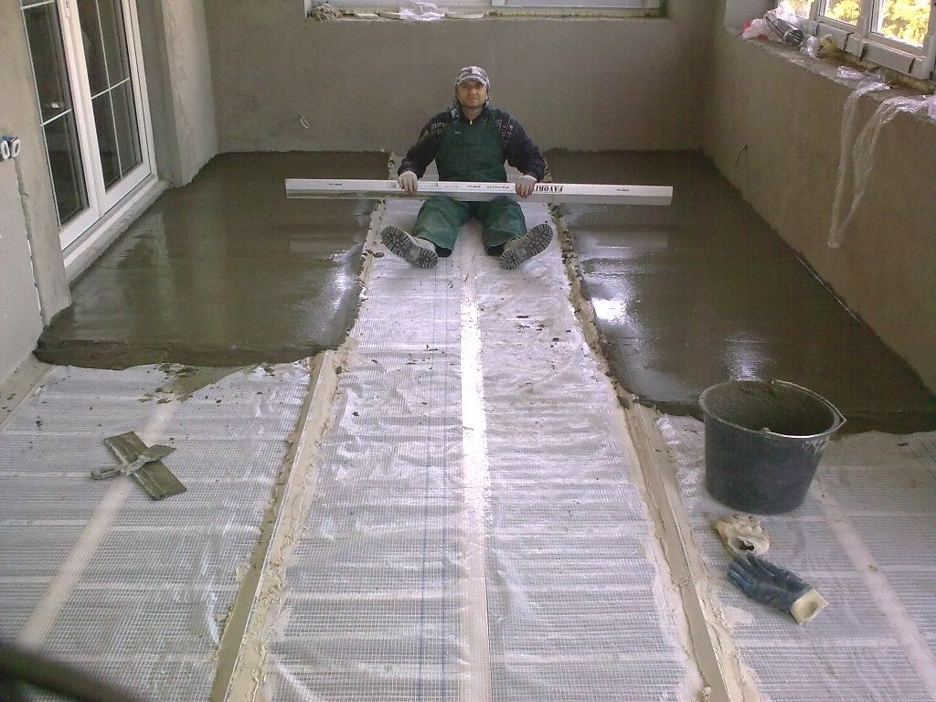 - вместо маяков используется 40-ой профиль, что позволит нам избежать просадки уровня во время укладки стяжки