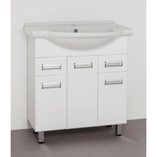 Ensemble de meubles Iris 75 Style Line, armoire à glace sélectionnée dans "options de livraison", meuble sous-vasque au sol, vasque en céramique Baikal 75, 3 portes battantes et 2 tiroirs, couleur - blanc Ensemble de meubles Iris 75 Style Line, armoire à glace sélectionnée dans "options de livraison", meuble sous-vasque au sol, vasque en céramique Baikal 75, 3 portes battantes et 2 tiroirs, couleur - blanc